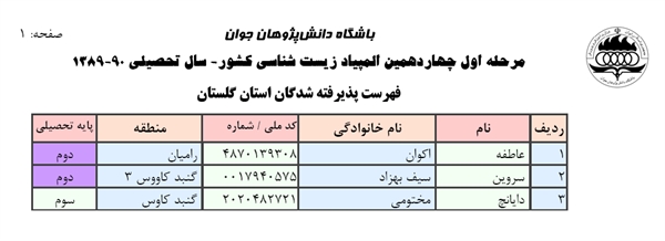 اسامي برگزيدگان المپياد زيست شناسي مرحله ی اول کشوری ۹۰-۸۹